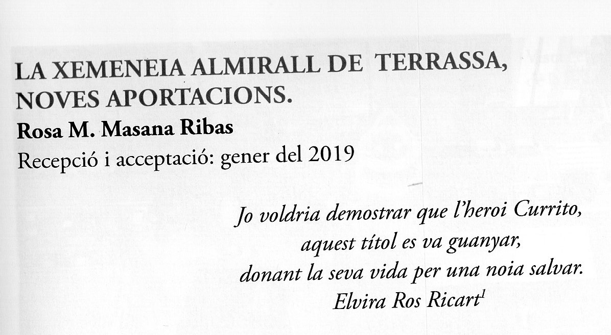 Durant les exposicions dels articles fetes per Joan Soler (director de l’Arxiu Històric de Terrassa AHT) va comentar que després de 20 anys que Rosa M. Masana hagués escrit l’article Els constructors de la Xemeneia Almirall de Terrassa ara fes un segona crònica aportant noves dades de la xemeneia. Vaig restar sorpresa quan va indicar que havien transcorregut 20 anys, de fet l’anterior article va ser presentat a la revista número 14 amb el títol : Els constructors de la xemeneia de la Bòbila Almirall i en aquesta segona ocasió correspon al número 34 que porta per títol : La Xemeneia Almirall, noves aportacions, més endavant serà consultable en línia.