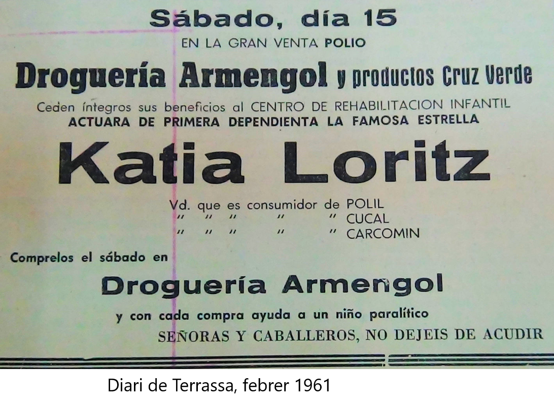 Publicitat Published 31 gener 2026 at 1092 × 793 in La actriu de cinema Katia Loritz visita Terrassa (1961) Publicitat de l’arribada a Terressa de Katia Loretz Next →