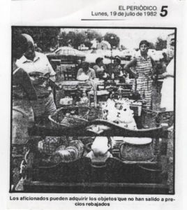 Guardo, en algun lloc, un retall de diari on el fotògraf va captar la Carme mentre mirava una de les parades dels brocanters. Quan el trobi, el voldré afegir. Hauria estat fantàstic tenir una foto també de la peça trobada, però amb aquesta història ja n’hi ha prou per fer volar la imaginació.. A sortit el retall de diari.