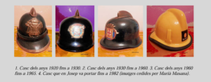 Com que en Josep treballava tan a prop de casa, venia com un llampec a buscar la pallissa de pell, el casc amb la cresta metàl·lica i les botes. Se les posava a corre-cuita i marxava mig vestint-se. Si jo era a casa, corria darrere seu per veure com baixava carrer avall fent gambades.