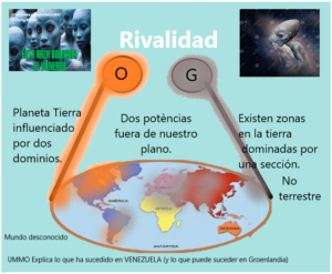 Lo más sorprendente son las explicaciones que dan sobre el hecho de que la Tierra está disputada por dos sectores de extraterrestres; por un lado existen los señores de Orión, que son una mezcla de razas, aunque con predominio de los seres reptiloides mamíferos, y el otro sector son los llamados Grises.