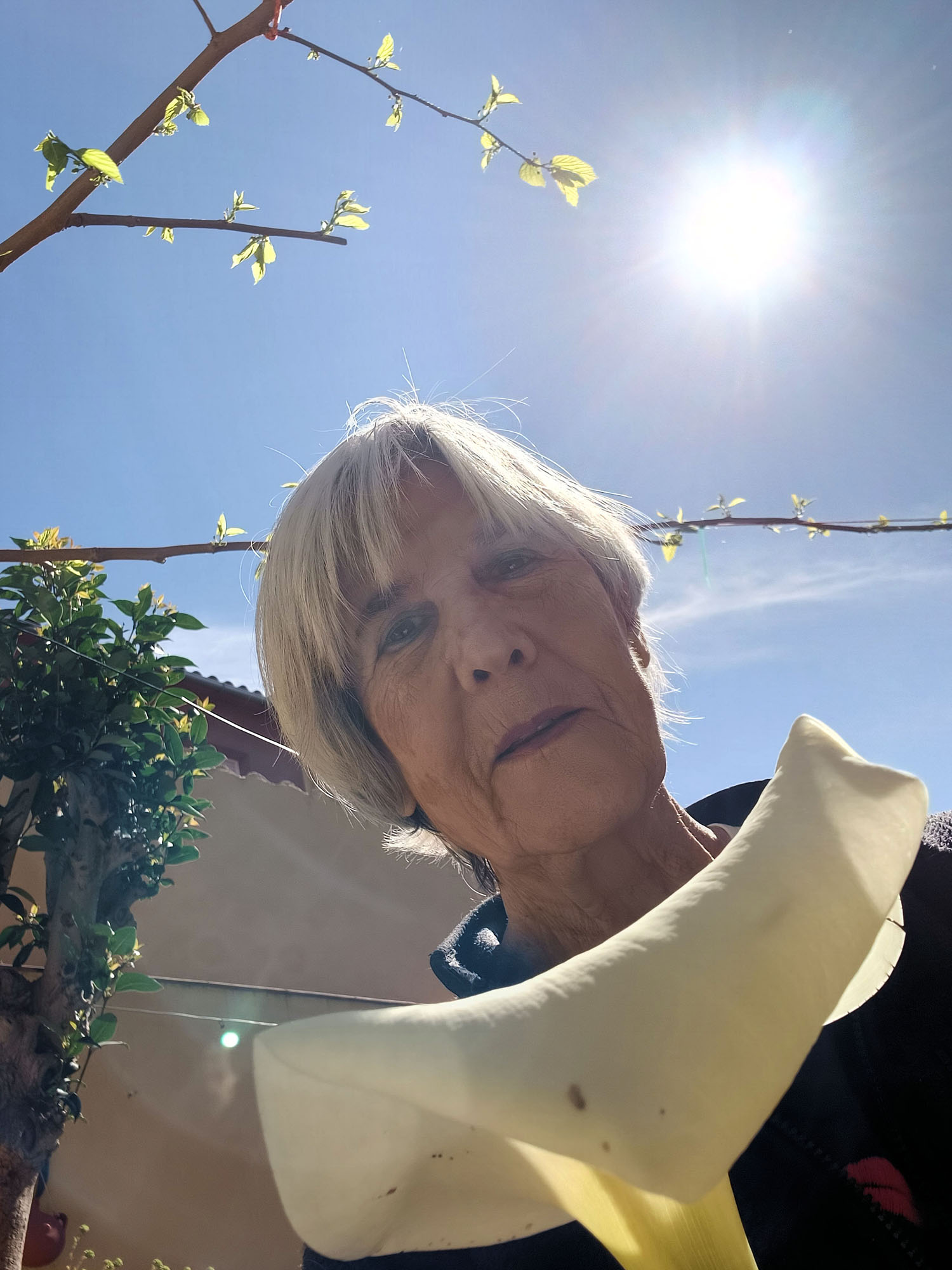 Avui al pati de casa he vist que la tramuntanada que ha fet aquest dies, havia tombat la flor d’ un lliri , l’he tallat i m’he fet un selfie, ha sortit el que es veu i cinquanta anys més tard de posar en evidència aquesta particularitat.