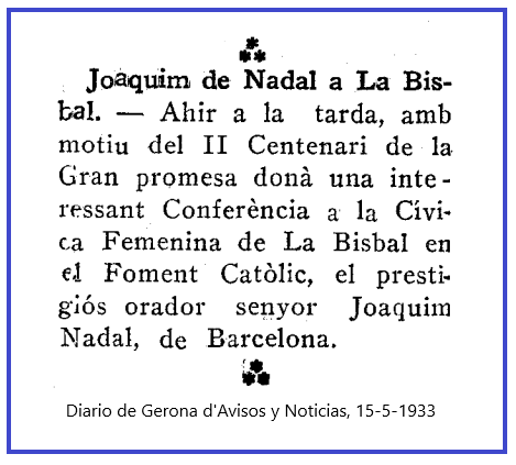 Una consulta a l’hemeroteca del Arxiu Municipal de Girona ens ha permès saber l’any 1933 al centre s’hi va fer una conferència, adjuntem el retall del diari.